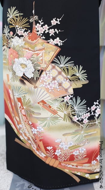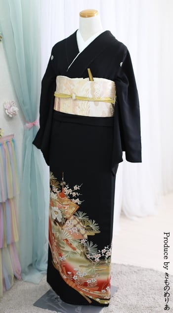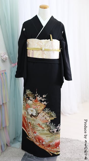 留袖/帯/長襦袢/帯揚げ/帯締め/伊達締め2本/衿芯/帯板1枚/帯枕/腰紐5本/コーリン/草履/バッグ/肌着/足袋/末広